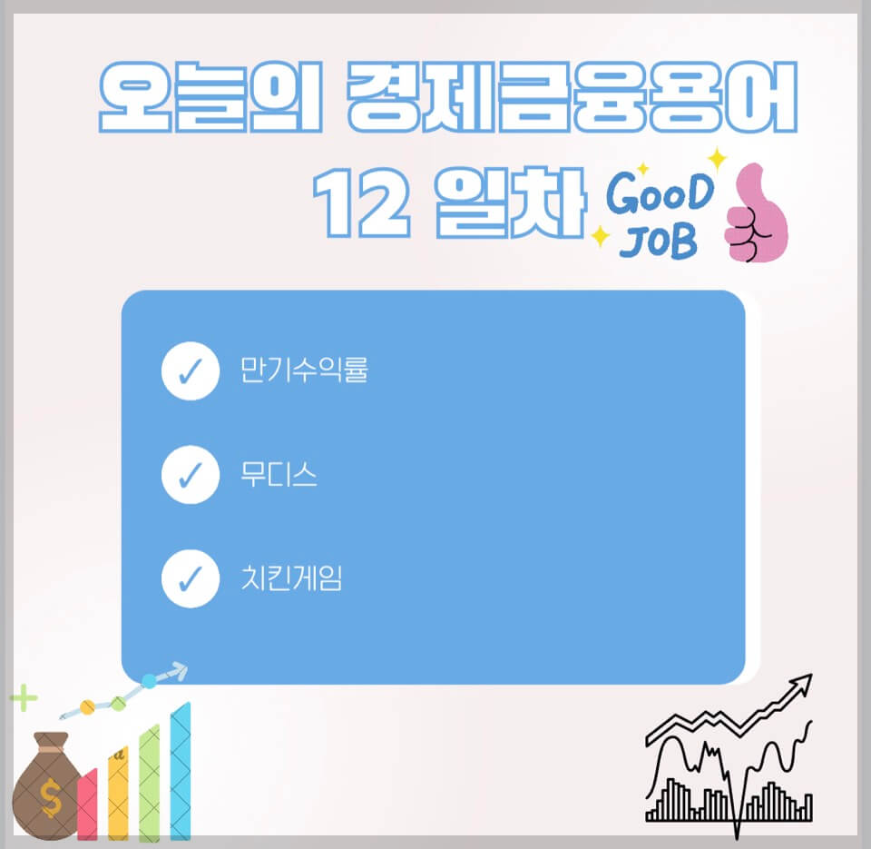 경제금융 용어 공부 90선_12일 차인 오늘은 '만기수익률, 무디스, 치킨게임'에 관해 공부해보아요.