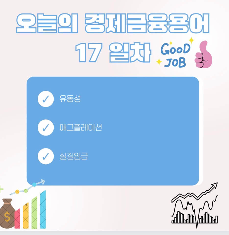 경제금융 용어 공부 90선_16일 차인 오늘은 '유동성, 애그플레이션, 실질임금' 에 관하여 알아보아요.