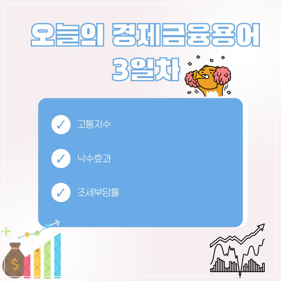 경제금융 용어 공부 90선_3일 차인 오늘은 '고통지수, 낙수효과, 조세부담률'에 대해서 알아보아요.