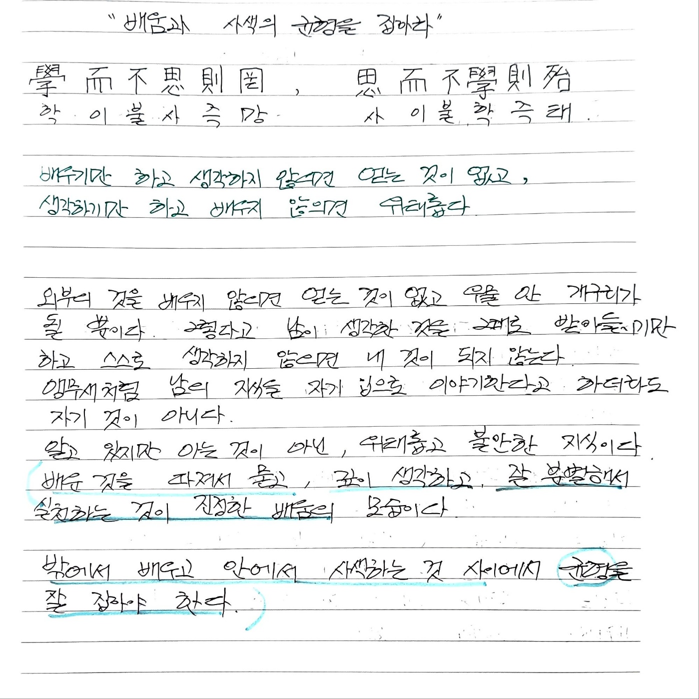 1. 논어 필사_배움과 사색의 균형을 잡아라