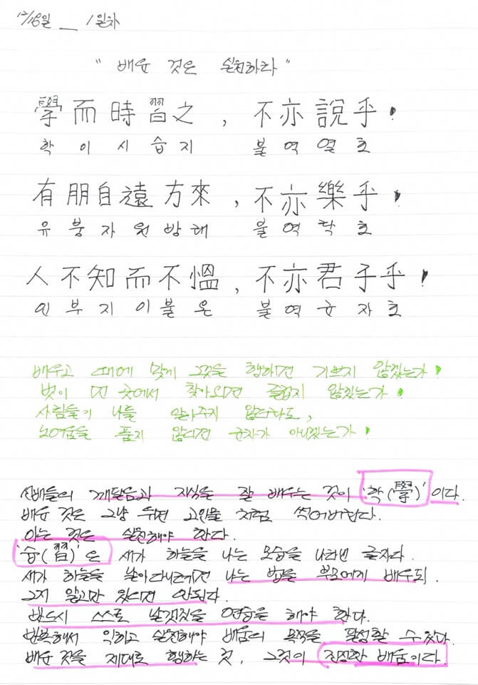 배우고 때에 맞게 그것을 행하면 기쁘지 않겠는가!