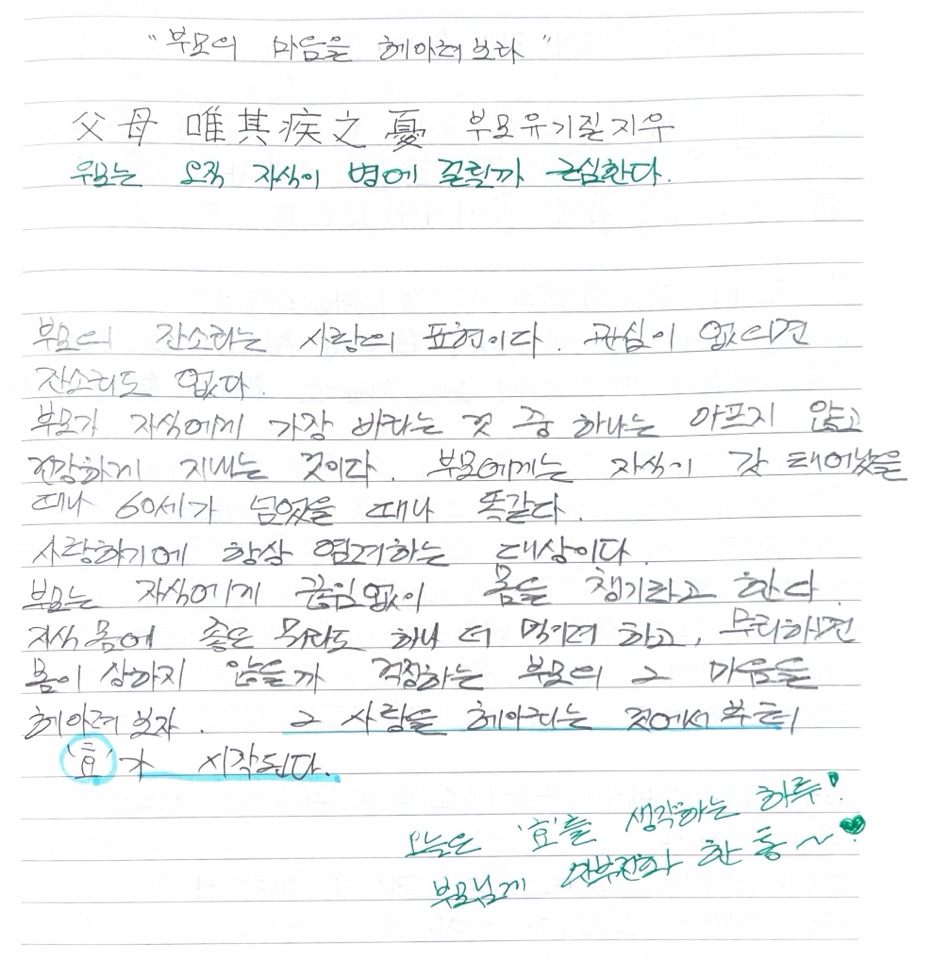 부모의 마음을 생각하게 하는 논어 필사 _15일째 '부모의 마음을 헤아려 보라'입니다.