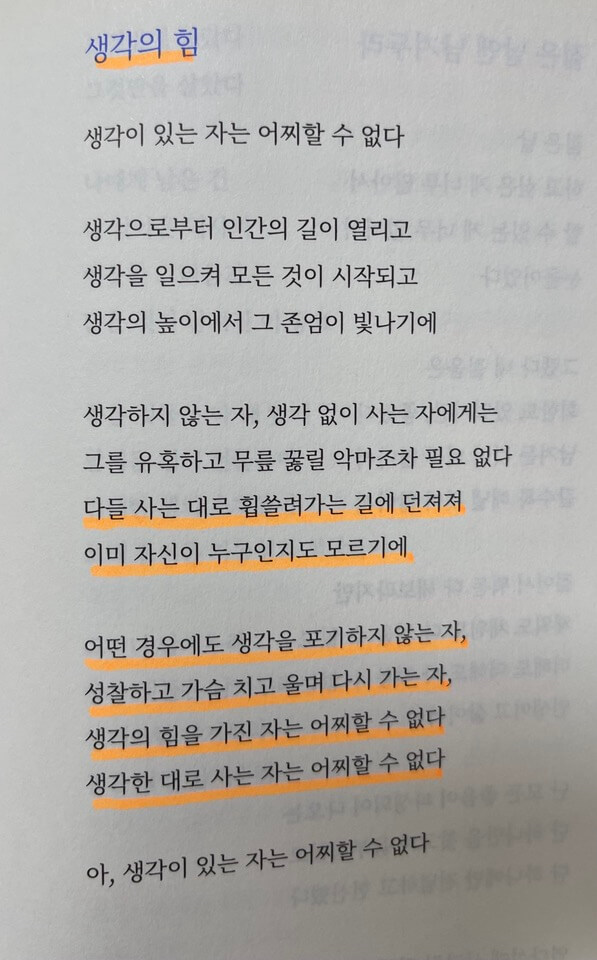 생각으로부터 인간의 길이 열리고