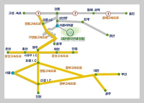 강원도 강릉 대관령 자연휴양림은 번잡하지 않고 아늑하며 숲이 울창해 그늘이 넓고 맑은 바람에 실려 오는 나무의 향긋한 냄새가 온몸 구석구석을 활력의 피톤치드와 음이온으로 채워준다고 한다.