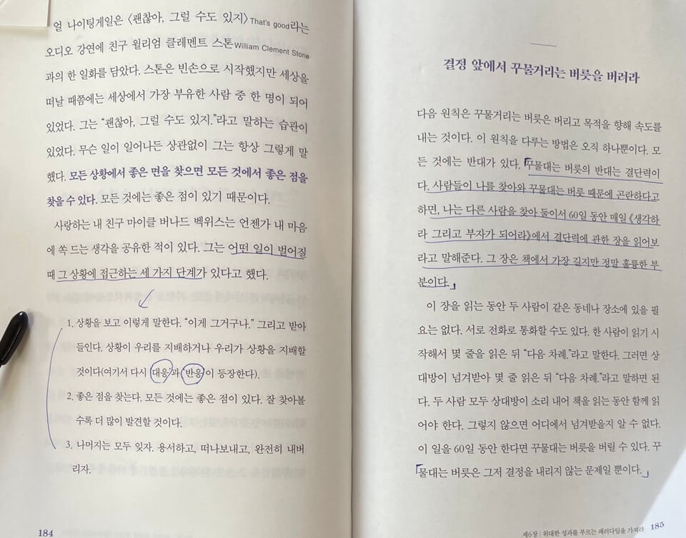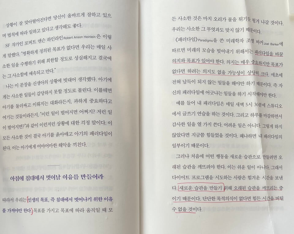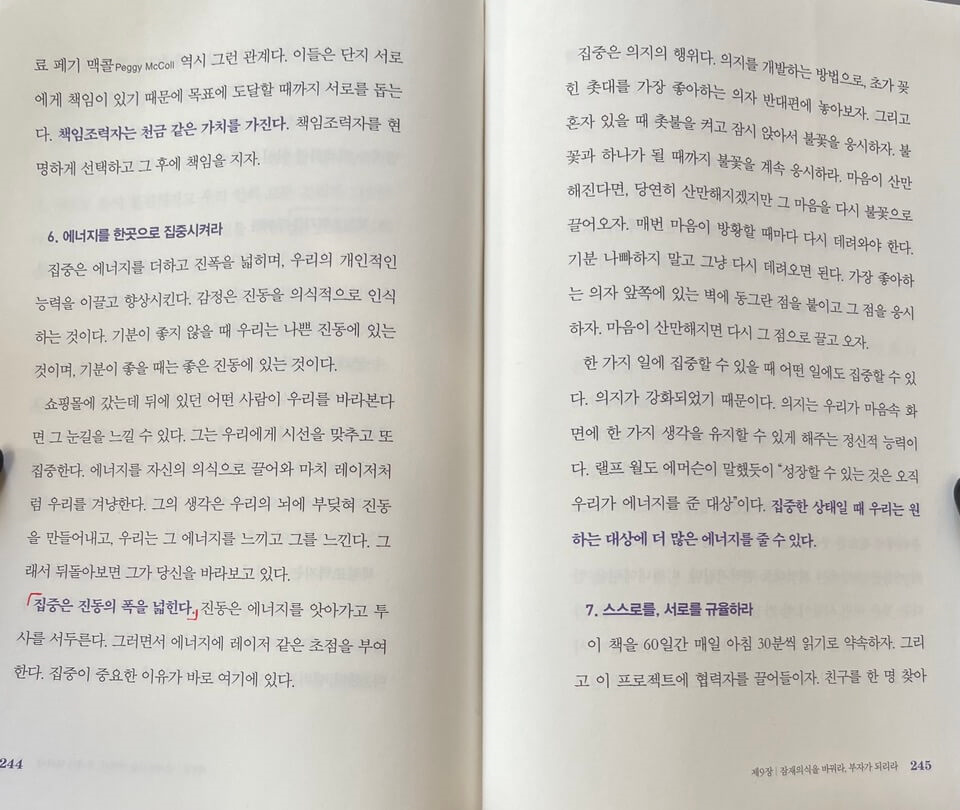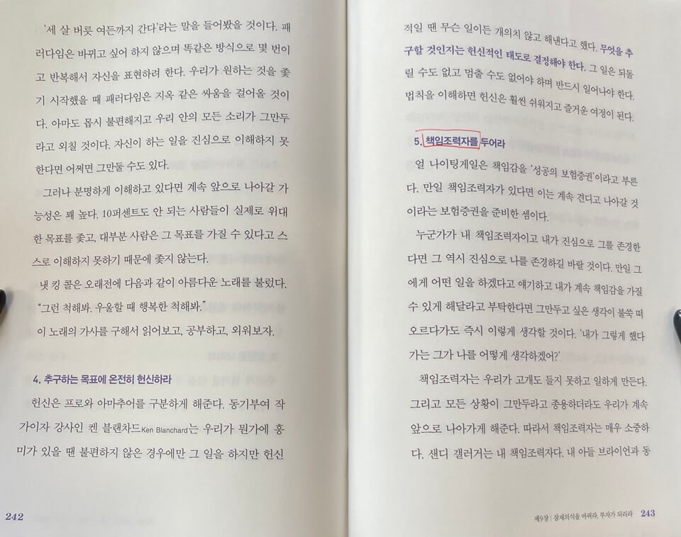 큰 목표를 계획하시는 분들 의지가 부족한 분, 내면의 힘을 키우고 싶으 분들은 이 책을 읽고 하나라도 실행하면 좋을 것 같습니다. 괴테는 '무언가를 할 수 있기 전에 우선 무언가가 되어야 한다'라고 말하듯이 우리의 마음을 잘 사용해서 위대한 성과를 거두기 위한 각자의 패러다임을 만들어 보는 건 어떠세요?