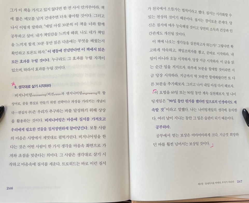 특히 저자는 부자가 되기 위해 부자로 변하고 부자의 마인드 셋을 갖추는 것이 가장 중요하다고 강조하고 있다.