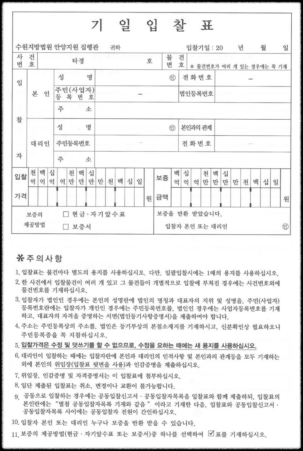 -입찰서류 제출 (기일 입찰표, 보증금 등)
