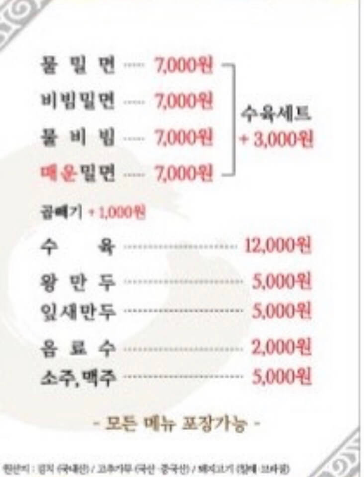 원조부산밀면 메뉴는