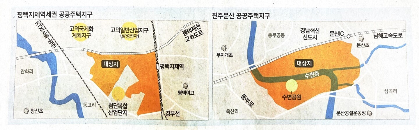 평택·진주문산 공공택지 조성3년후 사전청약·2030년 입주GTX 연결시 삼성역까지 28분주거·교육·의료 '자족도시'로진주엔 우주산업 배후주거지진주역·고속터미널 10분대