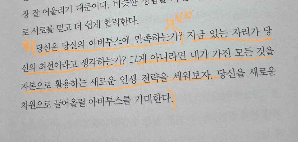 이 책에서는 아비투스가 각 계층에서 다른 점을 분석하고 7가지 자본을 활용해 최고의 아비투스를 구축하는 방법을 알려주고 있다.