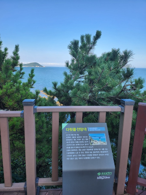 다릿돌의 뜻은 전망대 앞쪽에 놓인 암초가 마치 징검다리처럼 대마도까지 연결되어 있는 듯 보인다고 하여 붙여진 이름 이라고 합니다.